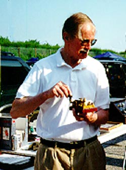 Cover Photo of Bill Holly, K1BH viewing keys at 2001 AWA