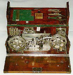 This is a complete ink-writing portable telegraph set consisting of