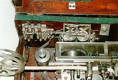 a miniature ink register with folding paper tape reels, an Italian style