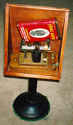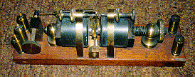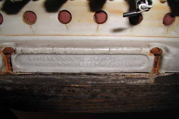 rectangular wooden base. Lightning spark gap is the double sawtooth