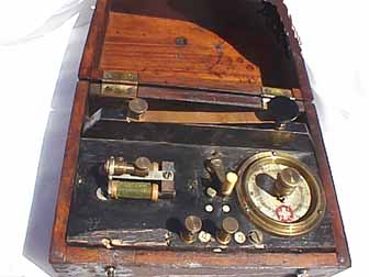 This unique portable telegraph set consists of a resonator box with a handle